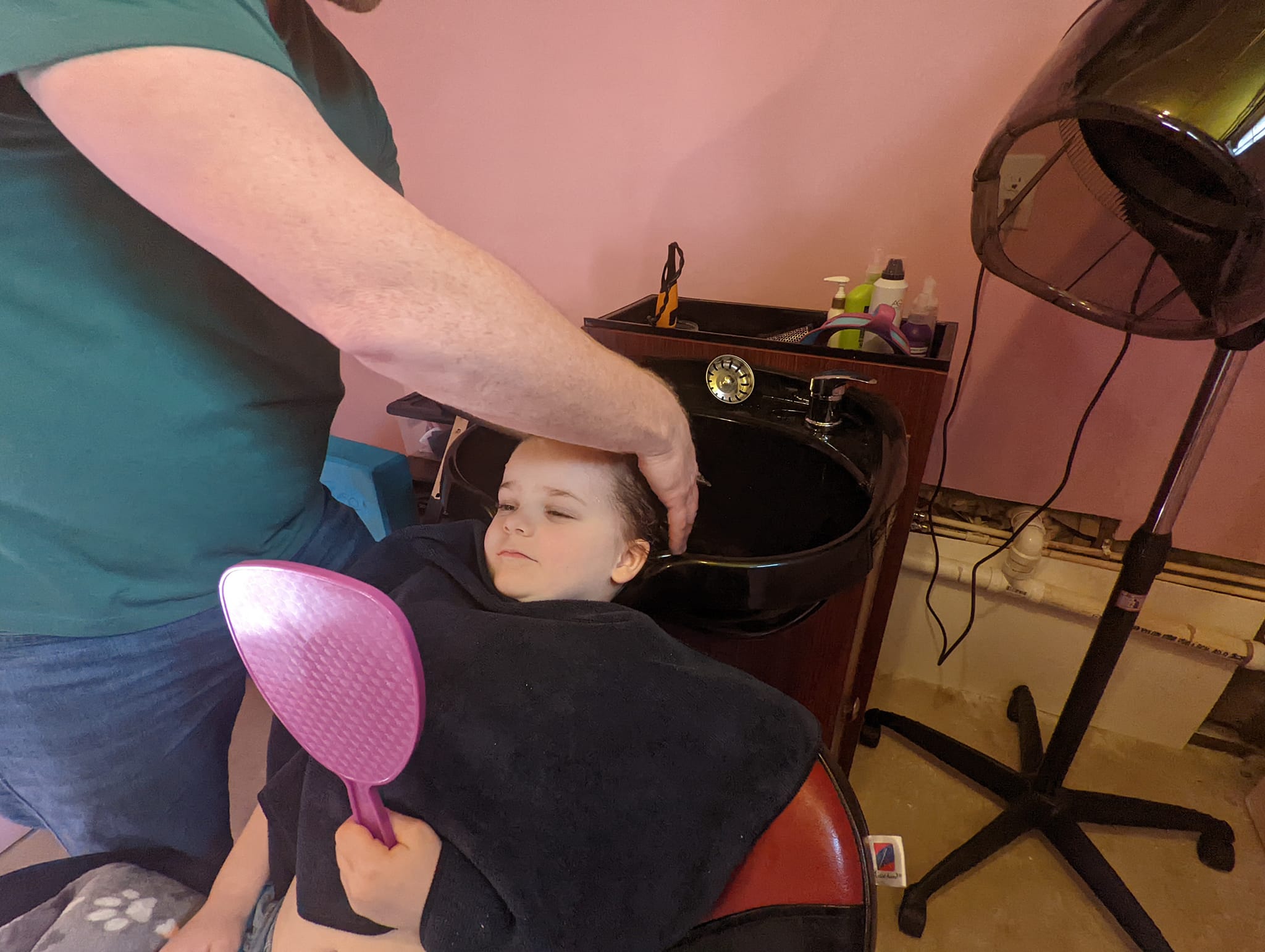 And what a success it has been! Madison, who has significant sensory issues, has been so averse to having her hair washed her entire life that at shower time every night she demands that I don’t wash her hair – even though there was never intent to wash it. But after having her hair washed in her little boutique, she has come home from school every day asking to go in there and have her hair washed. That’s the first time in her life she has ever made that request, but now it’s every day. I’ve actually had to tell her that her hair doesn’t need to be washed and that we’ll do it later. This is what I was hoping to achieve – a situation where she enjoys the process of having her hair done – and it has worked out perfectly.